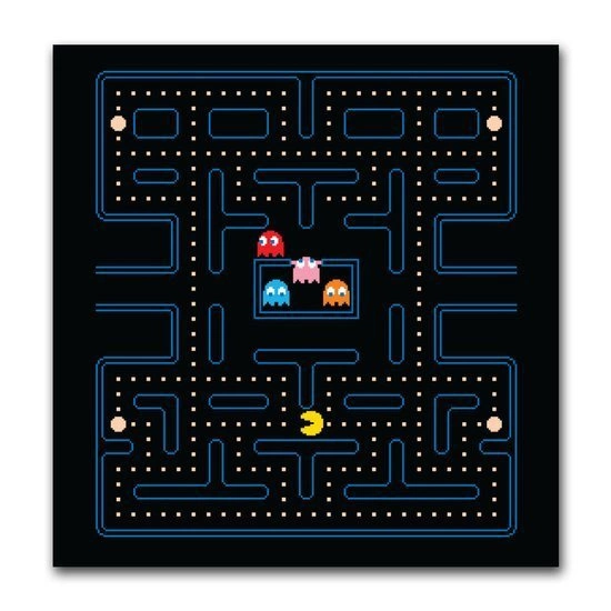 A hátoldalon a PAC-MAN™ 40. évfordulóját megünneplő hivatalos logó és egy licencelt illusztráció látható, amelyen PAC-MAN-t a „BLINKY” szellem üldözi.