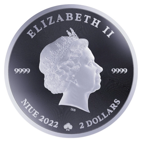 Az ezüstérme előlapján II. Erzsébet királynő képe, a „NIUE 2022” felirat, valamint a fém tisztaságára és az érme névértékére vonatkozó információk láthatók. Az előlapot Ian Rank-Broadley tervezte.