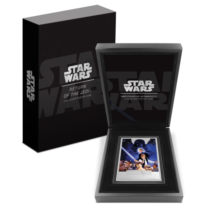 A Star Wars ezüstérme igazi csemege azoknak a George Lucas kultikus filmsorozatának rajongóinak, akik biztonságos és bevált befektetést keresnek. Az érmék tiszta Ag.999 ezüstből vannak verve, súlyuk 5 troy uncia, méretük 58 x 82 mm, proof minőségben. A termék példányszáma 200 darab. Az érméket a New Zealand Mint gyártja. A termék egyedi, eredeti csomagolásban kerül kiszállításra. Az érmék a kibocsátó országban törvényes fizetőeszközök.
