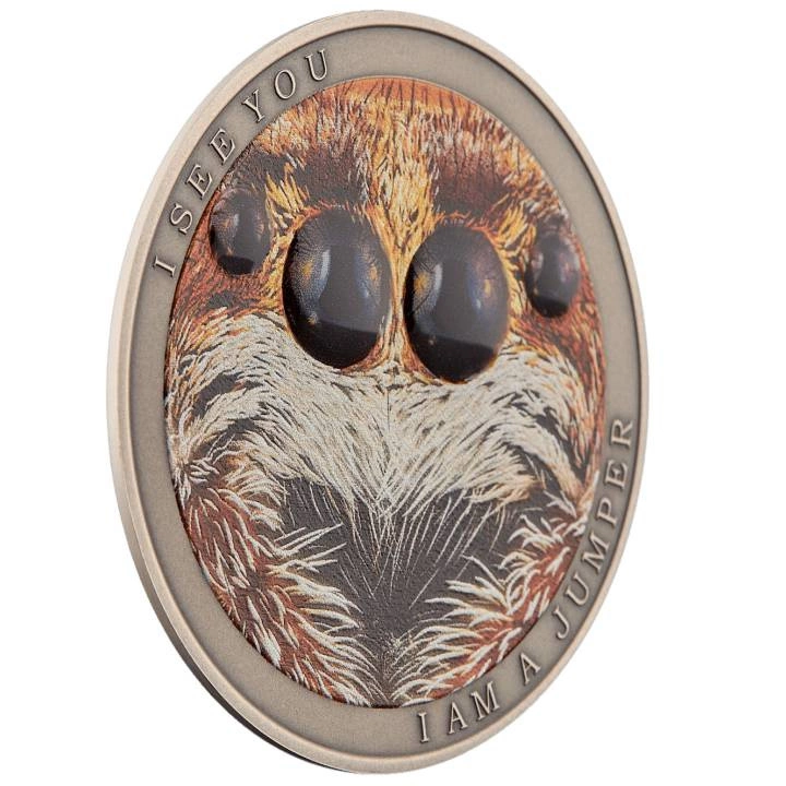 Niue: Vad Afrika - Az ugráló pók színes 1 dollár ezüst 2022 Antik felület