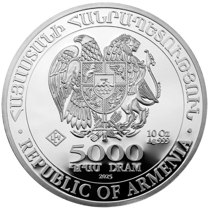 Az érme előlapján Örményország címere látható, rajta az 5000 dram névérték és a kibocsátás éve. A címer alatt, jobbra az érme súlya és finomsága szerepel. Az alsó szélén az „Örmény Köztársaság” felirat olvasható.