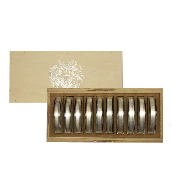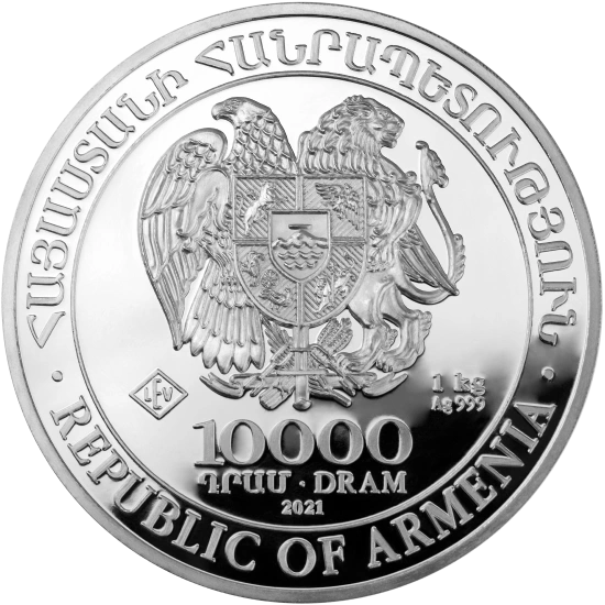 Az érme előlapján Örményország címere látható, rajta a 10 000 dram névérték és a kibocsátás éve. A címer alatt, jobbra az érme súlya és finomsága szerepel. Az alsó szélén az „Örmény Köztársaság” felirat olvasható.