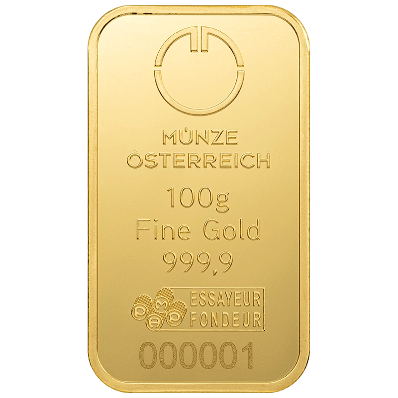 Osztrák Pénzverde 100 grammos aranyrudak