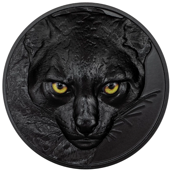 Palau: Éjszakai vadászok – Ocelot színes 2 uncia ezüst 2024 Obsidian Black