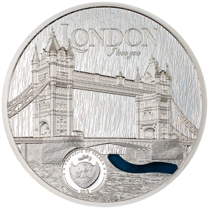 Az előlapon a Tower Bridge, a színes Temze folyó és a „Palaui Köztársaság” logó látható. Az előlapon szerepelnek még a címletre vonatkozó információk, valamint a „LONDON” és „I LOVE YOU” feliratok.