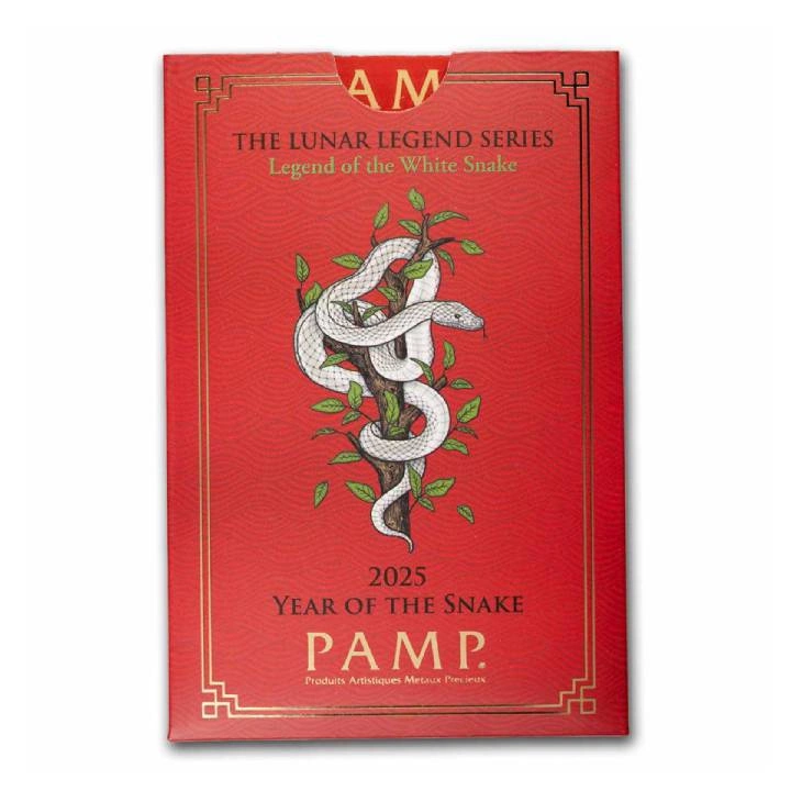 A Pamp Lunar Legend: White Snake 5 grammos aranytömb 2025 a kínai holdnaptár legendáiból ihletett egyedi sorozat második kiadása. A kollekció minden egyes téglája a zodiákus egyik állatát ábrázolja, és elmeséli annak történetét. A Fehér Kígyó motívum a híres Bai Suzhen-történetre utal, amely egy kígyóról szól, aki ezer év taoista gyakorlás után megkapta a képességet, hogy emberré váljon. Bai Suzhen és Xu Xian iránti szerelmének története a bátorságot, az áldozatot és az újjászületés erejét szimbolizálja, míg a kígyó maga a bölcsességet és az átalakulást jelképezi. A tégla 999,9-es tisztaságú aranyból készült, súlya 5 gramm (0,1607 troy uncia). Minden darab egyedi sorszámmal ellátott és biztonságos, vonzó piros CertiPAMP vizsgálati kártyában van csomagolva, amely igazolja a termék eredetiségét és paramétereit. A limitált kiadás és a kiváló minőségű kivitelezés miatt a rúd kiváló választás mind gyűjtők, mind befektetők számára. Emellett ideális ajándék bármilyen különleges alkalomra. Előlap: Az előlapon egy csillagokkal körülvett hold látható, amelyek mindegyike a kínai állatöv egyik állatát jelképezi. A kígyó, mint a ciklus hatodik állata, kiemelten szerepel, és jelzi legnagyobb erejét 9 és 11 óra között, amit a 10 órát jelző kínai karakterek is hangsúlyoznak. Az előlapon szerepel a PAMP Suisse gyártói jelölés, a súly, az arany finomsága és a tábla egyedi sorozatszáma is. Hátlap: A hátlapon egy fehér kígyó látható, amely levelek köré tekeredik, művészi interpretációban utalva a kínai legendára.Segítségre van szüksége? Van kérdése??Tegye fel kérdését, és mi azonnal válaszolunk, a legérdekesebb kérdéseket és válaszokat közzétesszük mások számára.