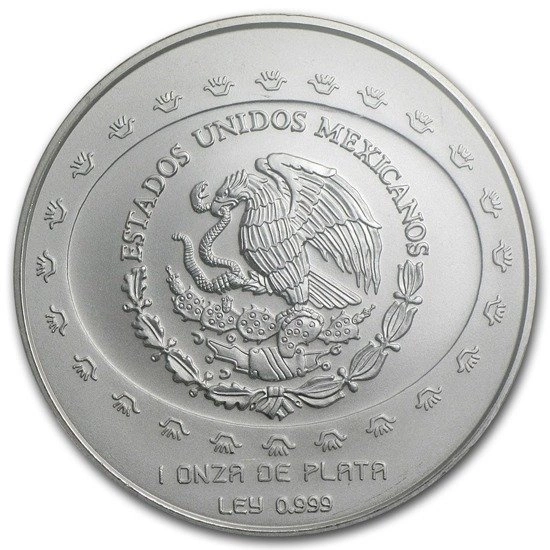 Awers przedstawia herb Meksyku, czyli orła trzymającego w dziobie i w szponach węża, którego otacza wieniec. Powyżej znajduje się napis ESTADOS UNIDOS MEXICANOS, czyli Stany Zjednoczone Meksyku.