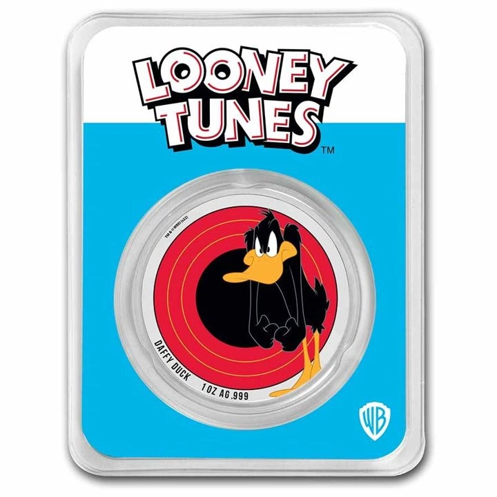 A hátoldalon az ideges Daffy Duck művészi, színes képe látható. Ezenkívül a hátoldalon szerepelnek az ezüst súlyára és tisztaságára vonatkozó információk, valamint a „DAFFY DUCK” felirat.