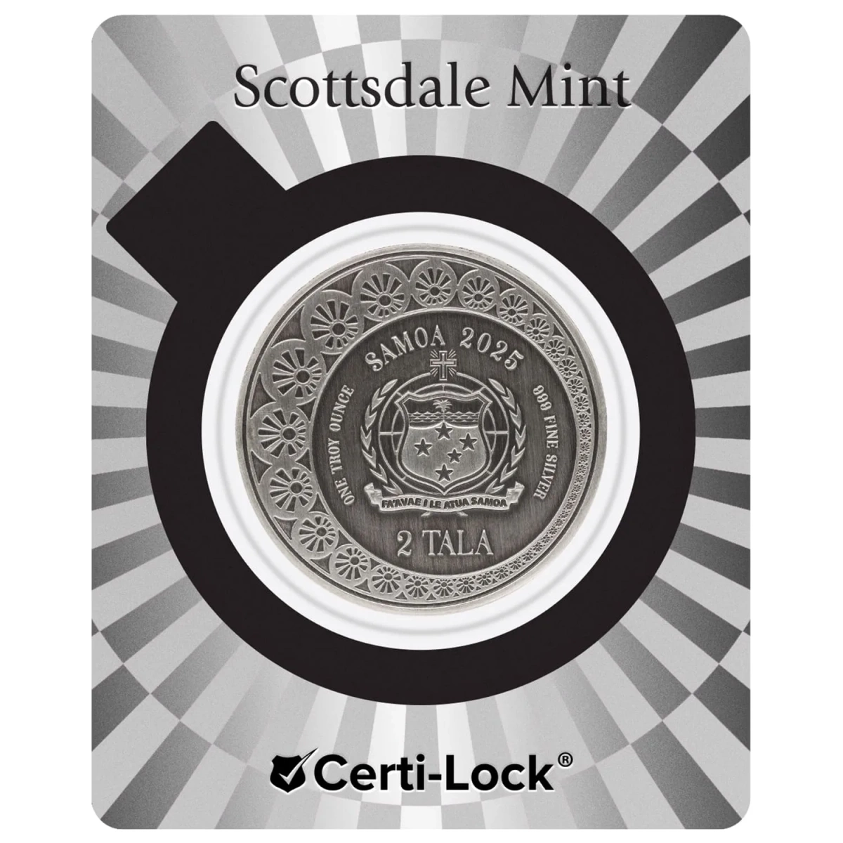 A Samoa: Sellő és gyöngy színű 1 oz 2025 ezüst 2025 antikolt érme egy egyedülálló gyűjtői érme, amely a mitológia és a víz alatti rejtélyek világába kalauzol el. A híres Scottsdale-i pénzverde által 2025-ben kibocsátott érmén a legendás sellő látható, aki a gyöngyöt - az óceán legértékesebb kincsét - őrzi. A színes hátlap egyedi színt kölcsönöz a kompozíciónak, kiemelve a részleteket, míg az antikolás tovább fokozza az érme kontrasztját és esztétikumát. 1 uncia tiszta finom ezüstből készült, átmérője 38,8 mm, vastagsága 3,1 mm. A címlet 2 Tala, és a korlátozott, 2500 darabos kibocsátás miatt keresett darabja bármely numizmatikai gyűjteménynek. A színes hátlap, az antikolás és a befektetési minőségű ezüst kombinációja vonzóvá teszi az érmét a gyűjtők és a befektetők számára. Minden darabot certipackban szállítanak, biztosítva a hitelességet és az elegáns megjelenést.Az előlap Szamoa címerét ábrázolja, a kibocsátás évével - 2025, a névértékkel - 2 Tala, valamint a súlyra és az ezüstpróba információival. Az összkép harmonikus stílusú, kiemelve az érme törvényes fizetőeszköz státuszát és gyűjtői értékét. az Rewers a legendás, hullámos hajú hableányt ábrázolja, amint egy fénylő gyöngy után nyúl, színes ábrázolásban. A hátteret részletes hullámok és korallmotívumok díszítik, és minden részletet gondosan vertek, kiemelve ennek az egyedi érmének a művészi értékét és pontosságát.Segítségre van szüksége? Van kérdése??Tegye fel kérdését, és mi azonnal válaszolunk, a legérdekesebb kérdéseket és válaszokat közzétesszük mások számára.