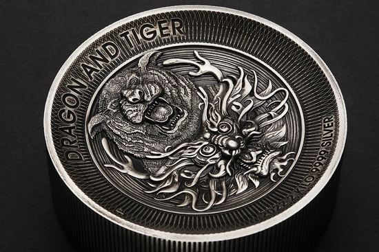 Sárkány és tigris 2000 gramm ezüst 2022 antikolt magas domborzatú