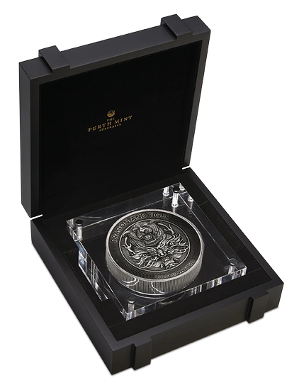 A hátoldalon egy sárkány és egy tigris kombinációja látható. A hátoldalon szerepelnek még a súlyra, a fém tisztaságára, a verés évére és a Perth Mint „P” jelére vonatkozó információk.