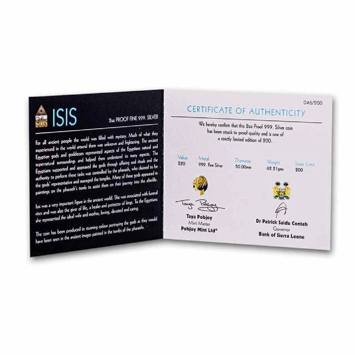 Sierra Leone: Egyiptomi istenek – Ízisz színes 2 uncia ezüst 2023 Proof