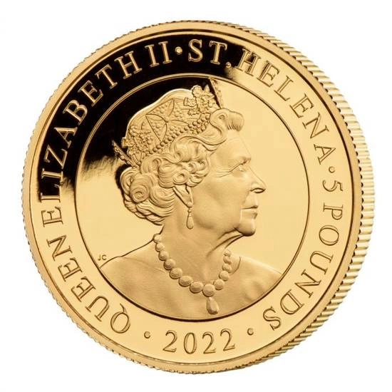 Az aranyérme előlapján II. Erzsébet királynő képe és a „St. Helena” és „Queen Elizabeth II” feliratok láthatók. Az előlapon szerepel a névérték és a verés éve is. Az előlapot Jody Clark tervezte.