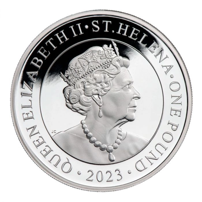 Az ezüstérme előlapján II. Erzsébet királynő képe és a „St. Helena” és „Queen Elizabeth II” feliratok láthatók. Az előlapon szerepel a névérték és a verés éve is. Az előlapot Jody Clark tervezte.