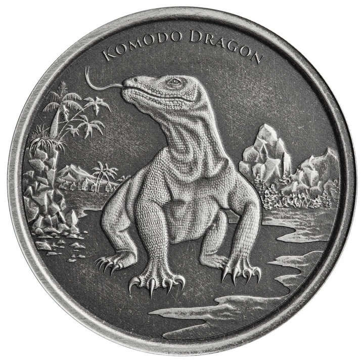 Tokelau: Komodo sárkány 1 uncia ezüst 2022 antikolt érme