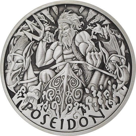 Az „Olympus istenei – Poszeidón antikolt felülettel” ezüstbeváltó érme 9999 finomságú tiszta fémből készült, súlya öt troy uncia, és „antikolt felülettel” rendelkezik. Az érme a Tuvalu kormány által garantált, és az országban törvényes fizetőeszköz.