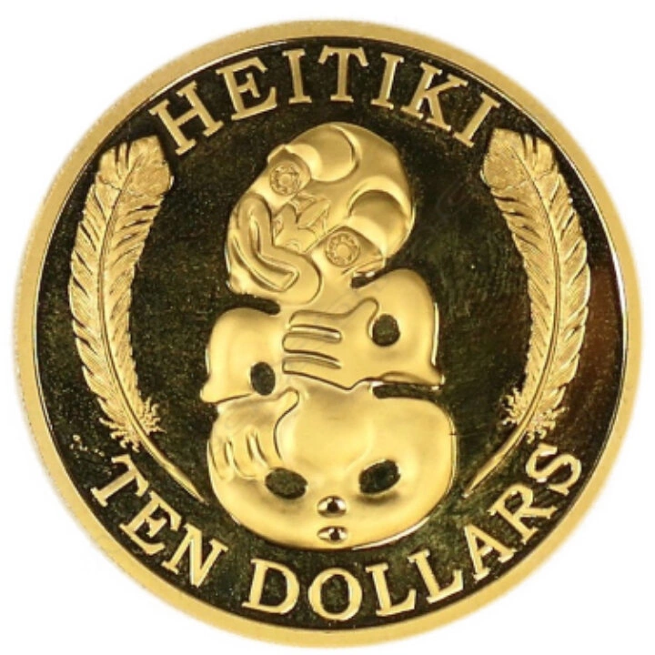 A hátoldalon egy Heitiki, egy új-zélandi hal alakú, huia tollakkal díszített amulett látható, amely a bölcsességet és a jólétet szimbolizálja. A hátoldalon az érme névértéke és a „HEITIKI” felirat is látható.