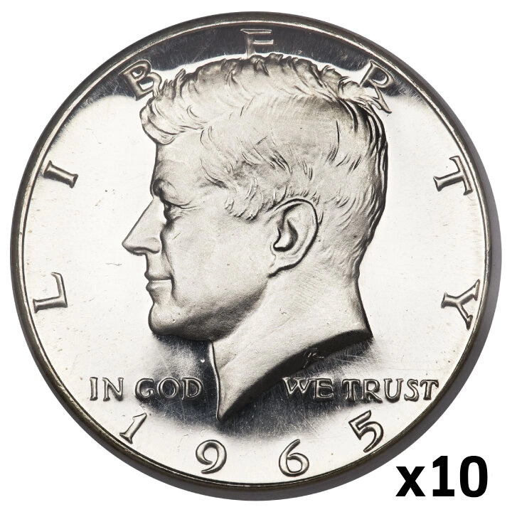 USA: 50 cent - fél dollár (0,50 USD) Ezüst Különböző évek (Ag.400 finomság) Forgalomban lévő 10 darab