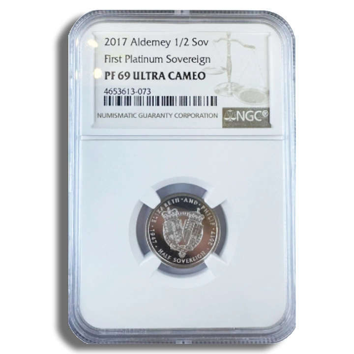 Alderney: 1/2 Sovrana Platino 2017 Proof NGC PF69 Ultra Cameo