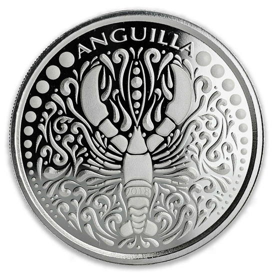 Il rovescio presenta un'aragosta e l'iscrizione "ANGUILLA 2018".