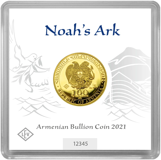 Złota moneta Arka Noego to popularny produkt inwestycyjny, wybity w wadzę 1 grama oraz czystości kruszcu 9999. Ten ciekawy walor jest emitowany przez Centralnego Bank Armenii. Jednakże sam proces produkcyjny odbywa się w prywatnej, niemieckiej mennicy - Leipziger Edelmetall Verarbeitung. Monety z wizerunkiem arki posiadają gwarancję rządu Republiki Armenii co do ich legalności, czystości próby oraz pochodzenia kruszcu, a także są pełnoprawnym środkiem płatniczym na terenie tego kraju.