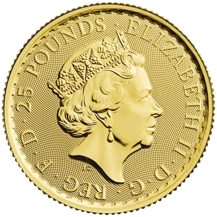 Il dritto raffigura l'immagine della regina d'Inghilterra Elisabetta II con la corona. Su di esso è riportata anche l'informazione sul valore nominale del titolo.