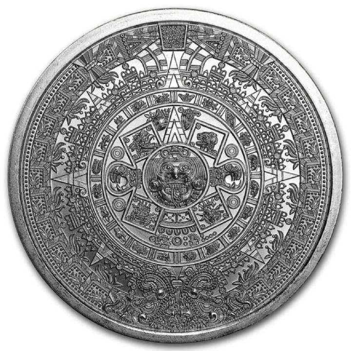 Il dritto della moneta d'argento raffigura la Pietra del Sole incisa.