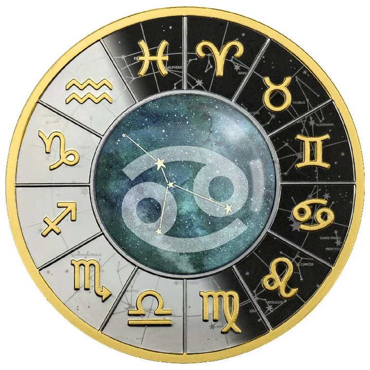 Camerun: Segni zodiacali - Cancro colorato, placcato in oro Argento 2023 Black Proof