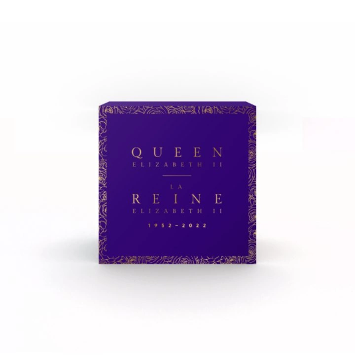 Il dritto raffigura quattro immagini di profilo della regina Elisabetta II e le iscrizioni “ELIZABETH II D G REGINA” e “1952-2022”.
