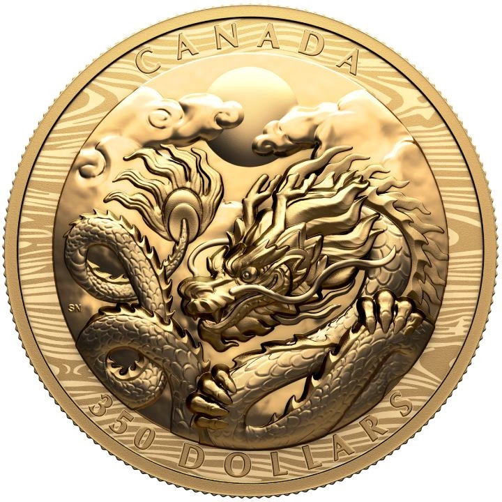 Canada: Anno del Dragone $350 Oro 2024 Proof Extraordinarily High Relief
