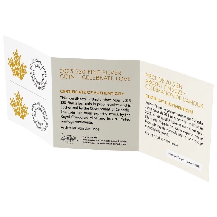 Canada: Celebrate Love $20 Argento placcato oro 2023 Proof