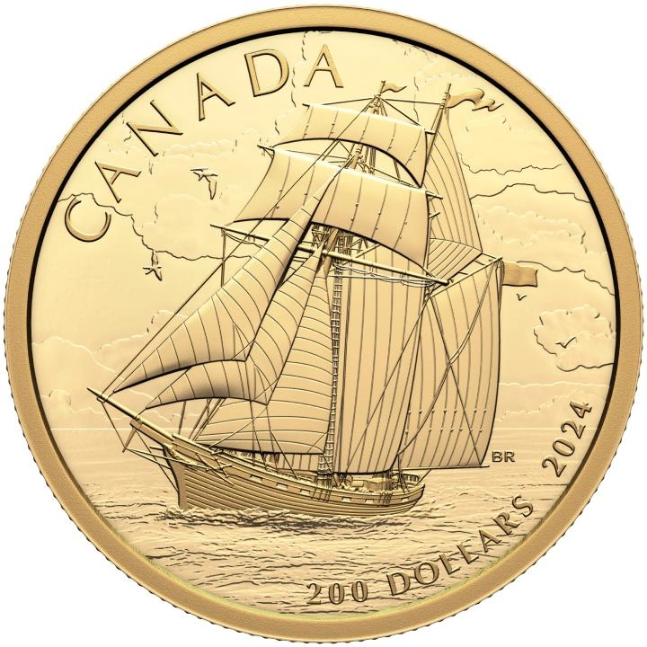 Canada: Tall Ships - Topsail Schooner $200 Oro 2024 Proof
