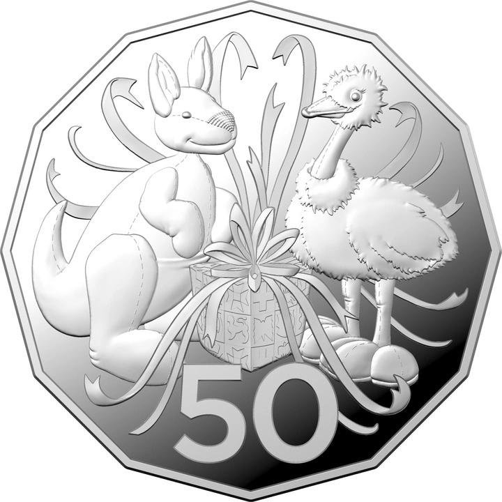 Sul rovescio sono raffigurati giocattoli popolari per bambini e l'indicazione del valore nominale della moneta. Il rovescio è stato disegnato da Bronwyn Scott.