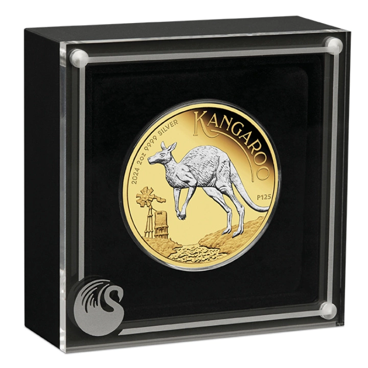 Canguro australiano placcato in oro 2 once d'argento 2024