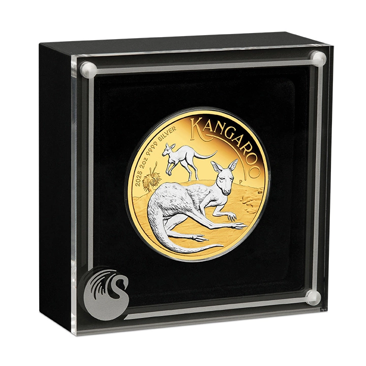 Canguro australiano placcato in oro 2 once d'argento 2025 Reverse Proof