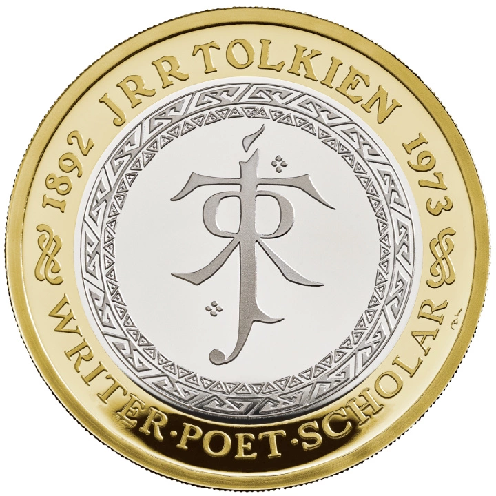 Il rovescio della moneta raffigura il monogramma di Tolkien. Sul rovescio sono riportate le iscrizioni “WRITER POET SCHOLAR”, “1892 JRR TOLKIEN 1973”. Il rovescio è stato disegnato da David Lawrence.