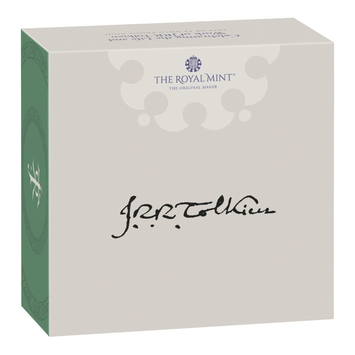 Il rovescio della moneta raffigura il monogramma di Tolkien. Sul rovescio sono riportate le iscrizioni “WRITER POET SCHOLAR”, “1892 JRR TOLKIEN 1973”. Il rovescio è stato disegnato da David Lawrence.