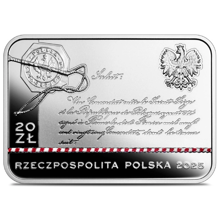 Centenario della firma del Concordato tra la Santa Sede e la Repubblica di Polonia 20 zł Argento 2025 Proof