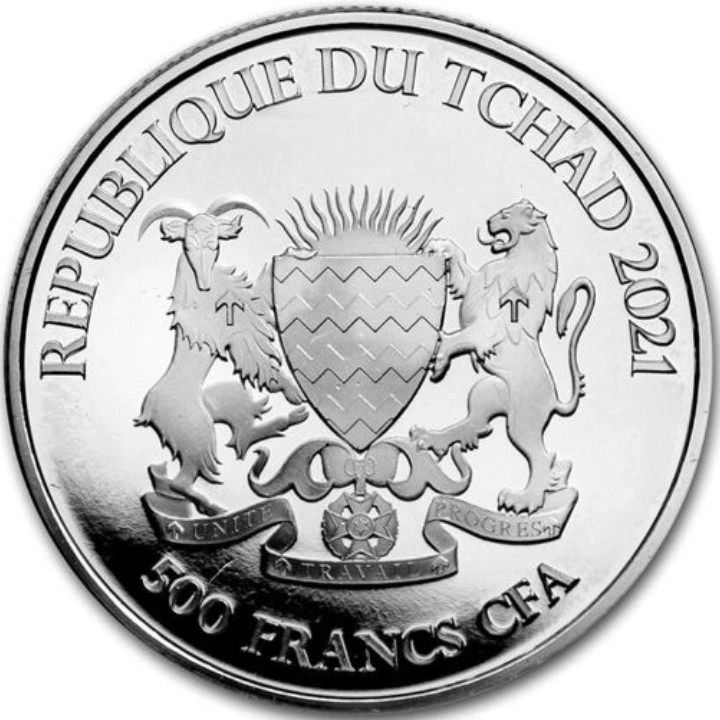 Il dritto della moneta d'argento raffigura lo stemma del Ciad e le informazioni relative all'anno di emissione e al valore nominale della moneta.