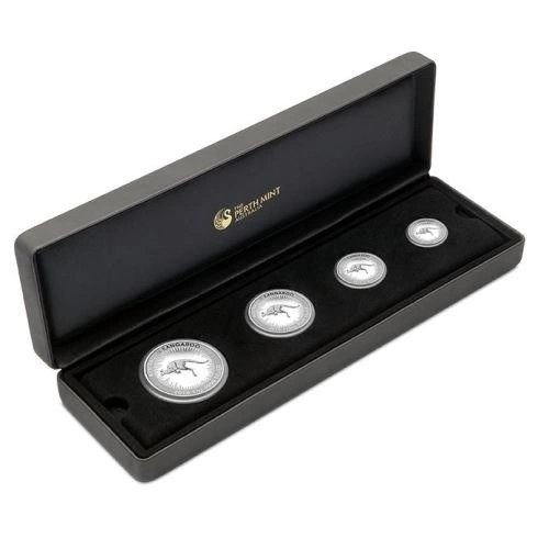 W zestawie czterech monet Australijski Kangur z 2016 roku znajdują się okazy o wadze 1 uncji, 1/2 uncji, 1/4 oraz 1/10 uncji srebra. To monety o identycznych awersach i rewersach, a różnice pomiędzy nimi dotyczą wyłącznie kwestii wagi, średnicy oraz wartości.