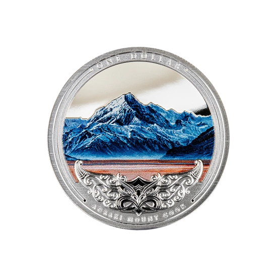 Discover New Zealand: Aoraki Monte Cook colorato 1 oncia d'argento 2021 Proof