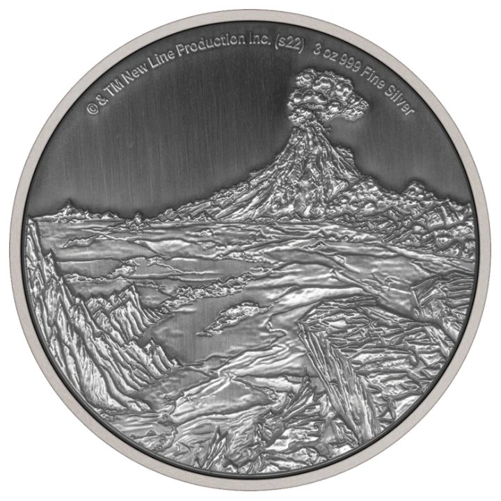 Il rovescio raffigura il vulcano sul Monte del Destino. Sul rovescio sono riportate informazioni sul peso e sulla purezza del metallo.