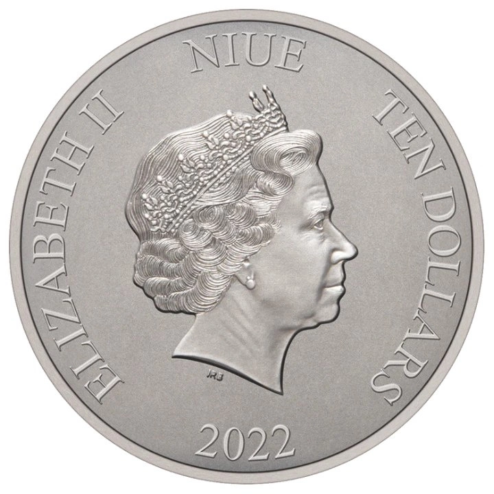 Il dritto della moneta d'argento raffigura l'immagine della regina Elisabetta II, la scritta “ELIZABETH II”, “NIUE” e il valore nominale e l'anno di emissione della moneta. Il dritto è stato disegnato da Ian Rank-Broadley.