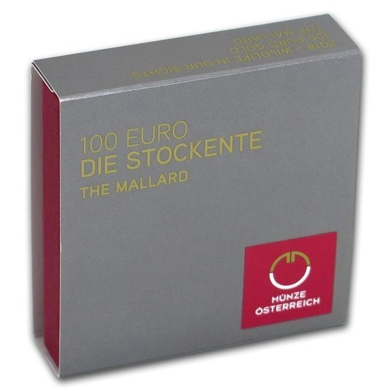 Złota moneta "Kaczka krzyżówka 100 Euro 2018 Proof" jest bita z kruszcu próby 986 Au, przy czym waga zawartego złota wynosi 16g, natomiast całkowita waga monety wynosi 16.23g. Za ograniczoną do 30 000 sztuk emisję szóstego egzemplarza z serii Wildlife in our Sights odpowiada znakomita europejska mennica Austrian Mint. Warto również dodać, iż złota moneta "Wildlife in our Sights: Kaczka krzyżówka 100 Euro 2018 Proof" jest produktem, który posiada gwarancję rządu Austrii oraz stanowi pełnoprawny środek płatniczy na terenie kraju emitenta. Całość jest dostarczana w ekskluzywnym etui wraz z numerowanym certyfikatem autentyczności.