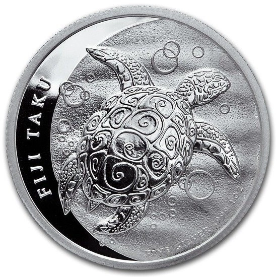 Na rewersie znajduje się podobizna żółwia szylkretowego, znanego również jako Taku, pływającego wzdłuż dna oceanu, pośród maleńkich bąbelków. Na rewersie znajduje się także informacja o próbie srebra (999) i wadze monety (1 uncja)
