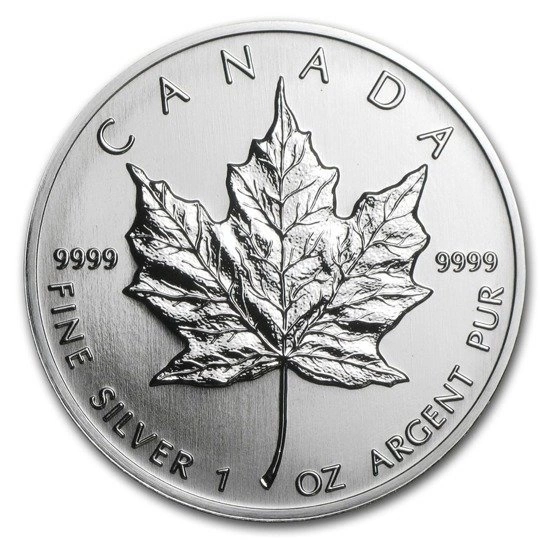 Na rewersie monety został przedstawiony liść klonowy, będący symbolem narodowym Kanady, a także próba w jakiej została wybita moneta (Ag .9999) oraz nazwa kraju (Canada), w którym jest produkowana.