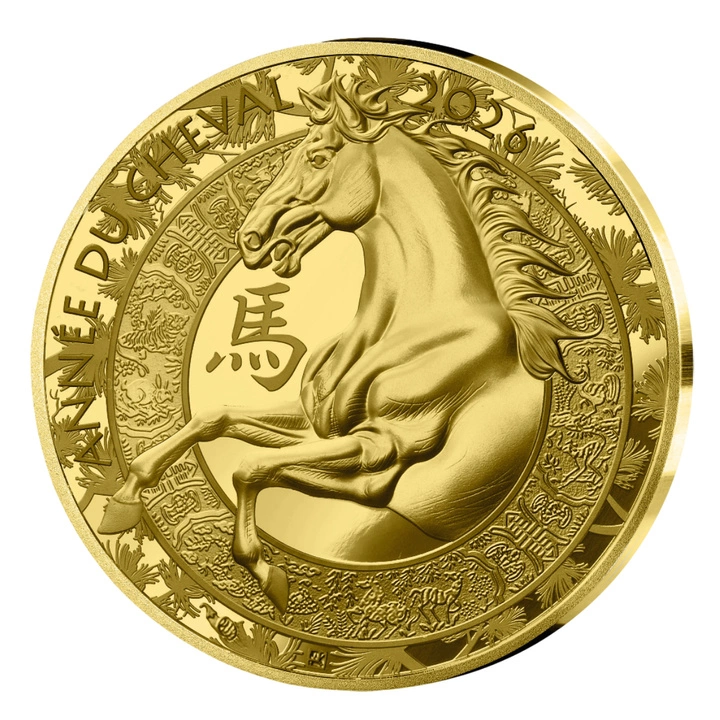 La moneta d'oro da 50 euro dell'Anno del Cavallo del 2026 è un eccezionale esempio di numismatica francese contemporanea, emessa dalla Monnaie de Paris. Questa emissione da collezione della serie Calendario cinese simboleggia l'energia e l'indipendenza, alludendo all'astrologia cinese, dove il cavallo è un segno pieno di passione, entusiasmo e amore per la libertà, il che la rende non solo uno strumento di investimento ma anche una testimonianza del dialogo culturale tra Oriente e Occidente nell'era della globalizzazione.La moneta Rewers raffigura i dodici animali dello zodiaco cinese che circondano una porta di un tempio tradizionale, che rappresenta il ciclo astrologico completo dal 2018 al 2029. La composizione sottolinea l'armonia e la continuità della tradizione, con la denominazione nell'angolo superiore sinistro e le iniziali “RF” sulla porta, che alludono alla Repubblica francese. Le iscrizioni e i dettagli riflettono l'attenzione al simbolismo culturale, sottolineando il dinamismo e la forza delle credenze orientali nel contesto della coniazione europea. Il dritto rappresenta un frammento di cavallo al galoppo, circondato da un anello con motivi tradizionali cinesi, contenente l'anno di emissione “2026” e l'iscrizione “Anno del cavallo”. Intorno al bordo, le caratteristiche del marchio sono enfatizzate dai caratteri: energia, indipendenza e passione. Ispirato al simbolismo orientale, questo disegno emana eleganza e vitalità, ed essendo realizzato in puro oro 999 proof garantisce non solo l'estetica ma anche la durata nel tempo.