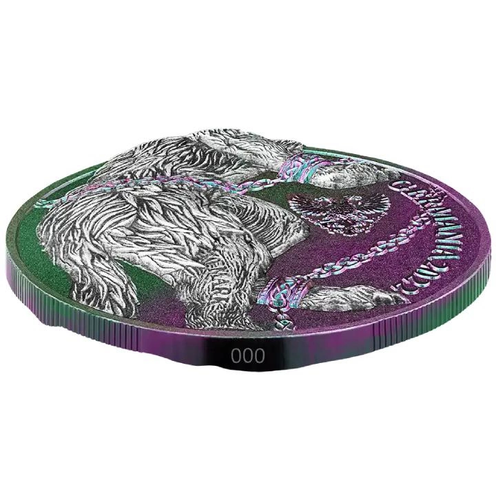 La moneta d'argento è stata coniata in metallo puro con titolo Ag.9999, del peso di 2 once troy e del diametro di 45 mm. La tiratura della moneta è di 999 pezzi. La moneta è stata realizzata dalla Germania Mint.