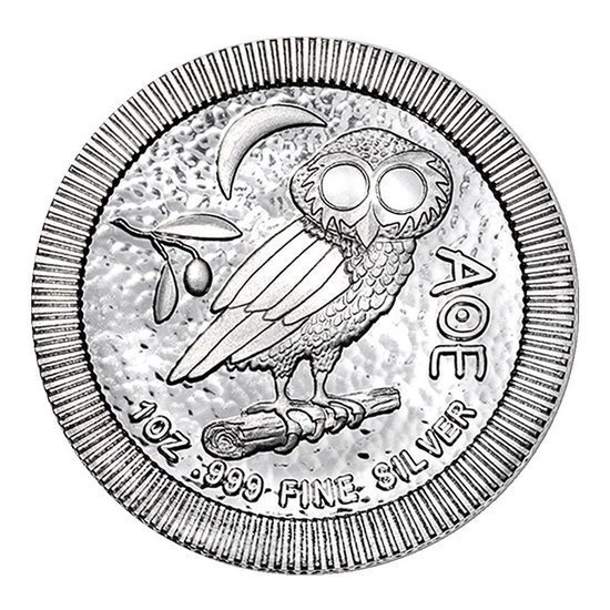 Rewers przedstawia siedzącą na gałęzi ateńską sowę. W tle można zauważyć oliwną gałązkę pokoju oraz księżyc. Dodatkowo na rewersie znajdują się napis „ AOE” i takie informację jak waga oraz próba wybicia monety.