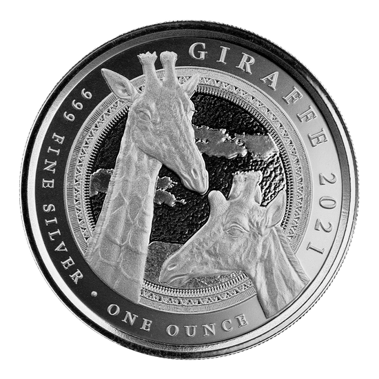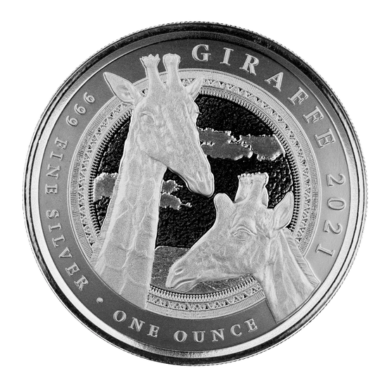 Il rovescio raffigura due giraffe e la scritta “GIRAFFE”. Sul rovescio è riportata anche l'informazione relativa al peso, alla purezza del metallo e all'anno di conio.